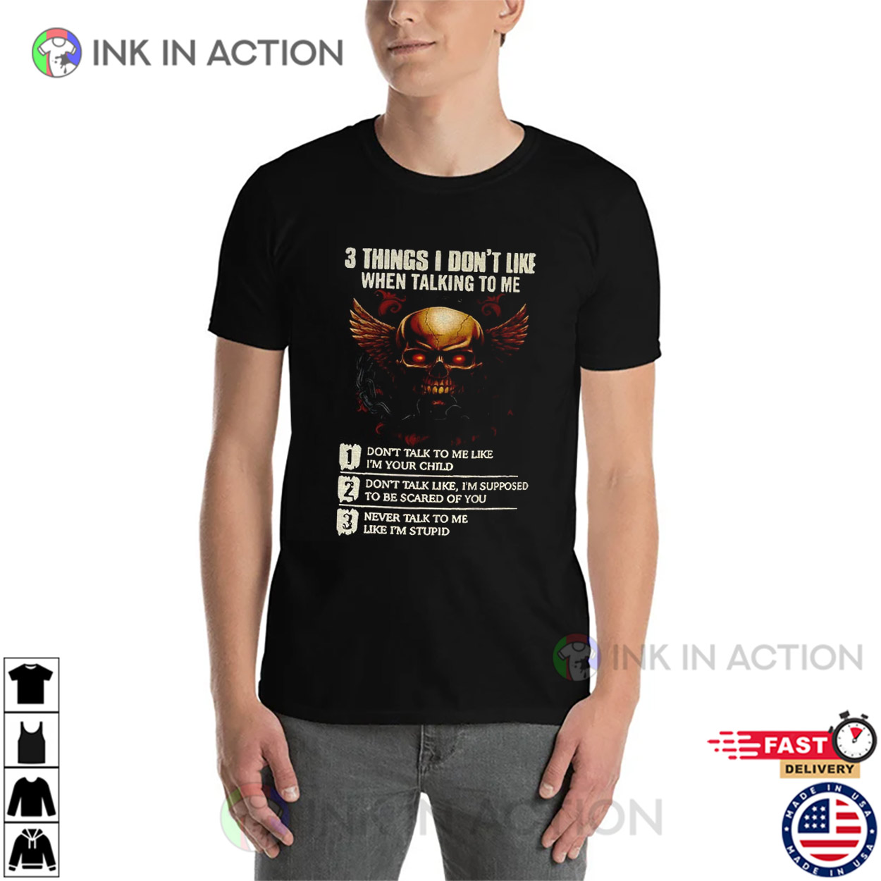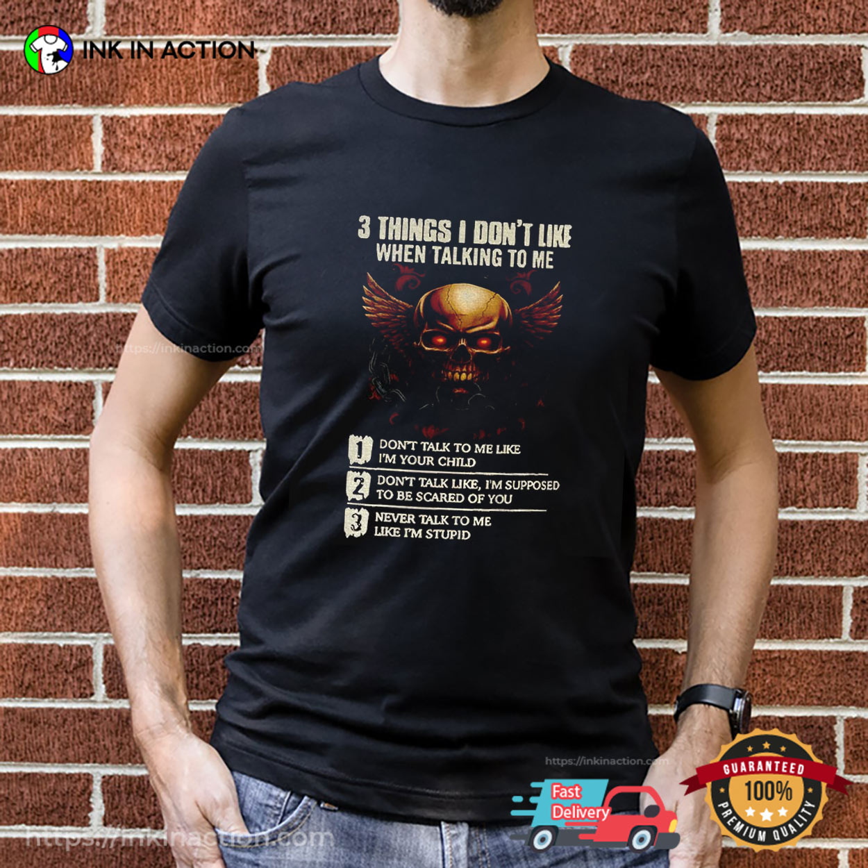 Looking for a statement piece that keeps you stylish and comfortable all year round? Our 3 Things I Don’t Like When Talking To Me T-shirt is designed for those who love to stand out and express themselves through fashion-forward designs, pop culture references, and iconic graphics.