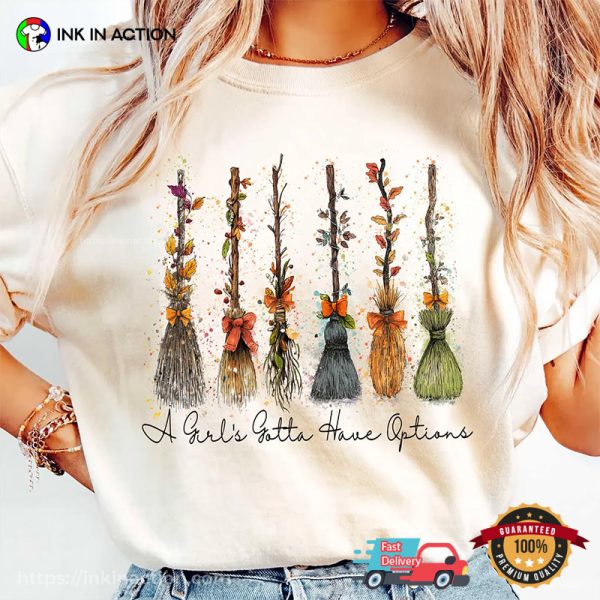 A Girl’s Gotta Have Options Witch’s Broomsticks T-shirt