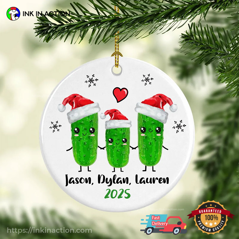 Ready to make your holiday decor shine with this brand-new Custom Adorable Christmas Pickle Family Ornament?
