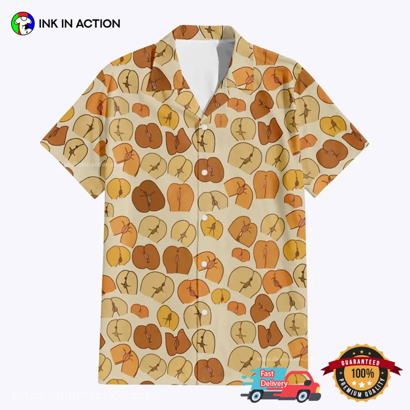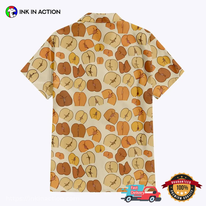 The Aloha shirt, Hawaiian shirt, Summer Beach, Summer Vibes category applies to this Adult Humor Peaches Butt Hawaiian Shirt.