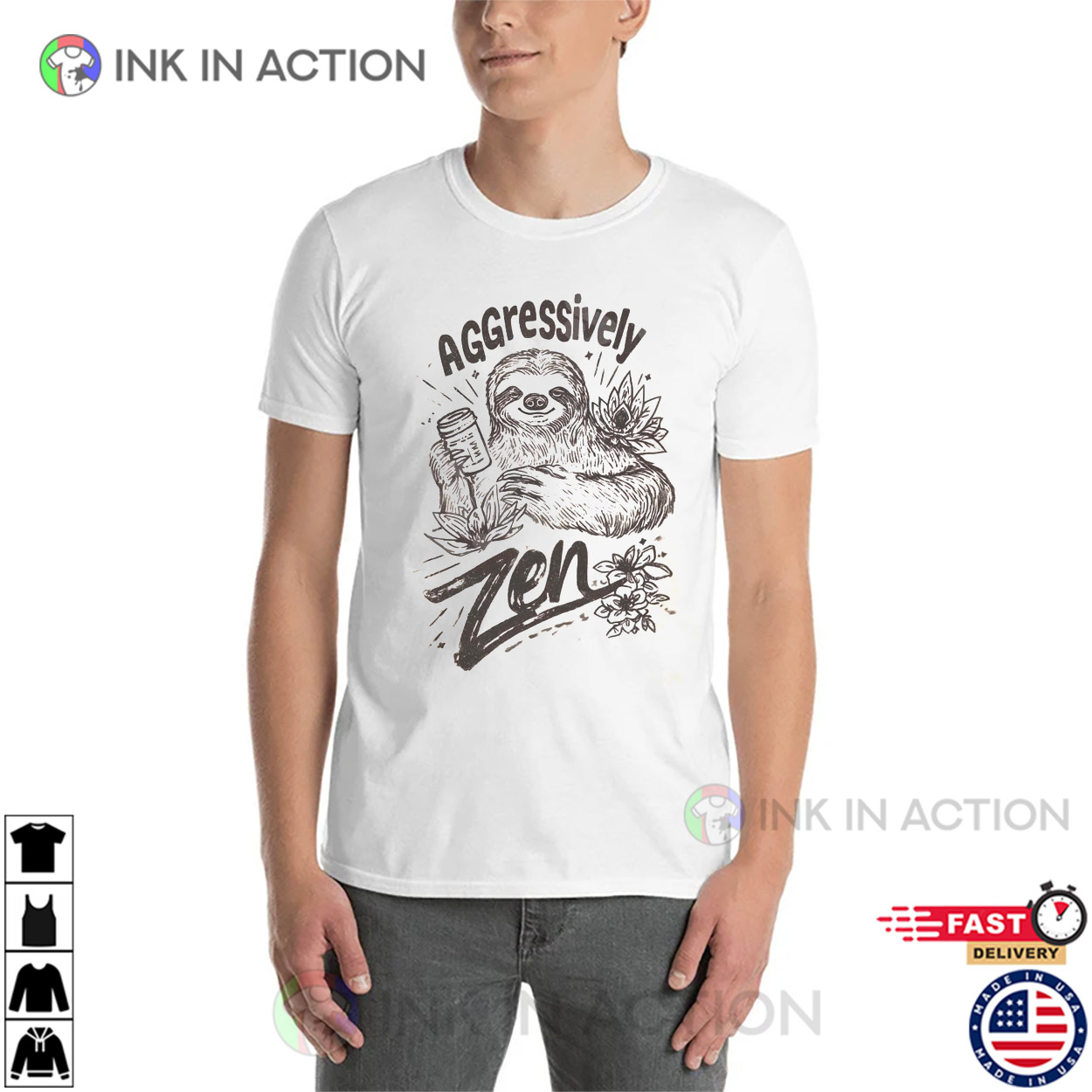 Are you ready to celebrate the holiday season with style and ease? Look no further! Our Aggressively Zen Sloth Lazy Day T-shirt, printed right here in the USA, offers affordable and practical options that will make your life stress-free and your celebrations unforgettable.