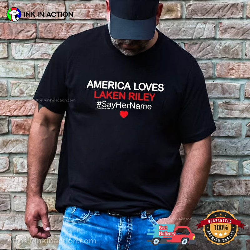 Have you ever been giddy about great trending t-shirts? Want something that will keep you consistently warm on those long, chilly nights? So stop looking now! You own this America Loves Laken Riley Say Her Name T-Shirt.