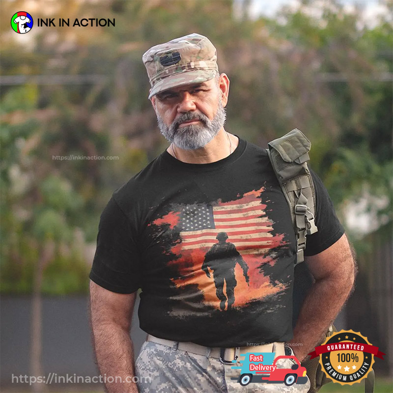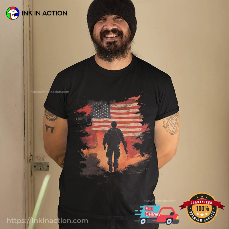 America Patriotic War Soldier Graphic Tee: Honor, respect, and gratitude.