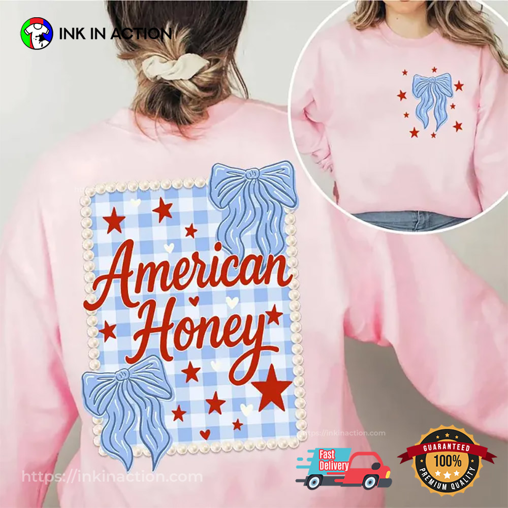 American Honey Flag Bows Coquette 2 Sided T-shirt