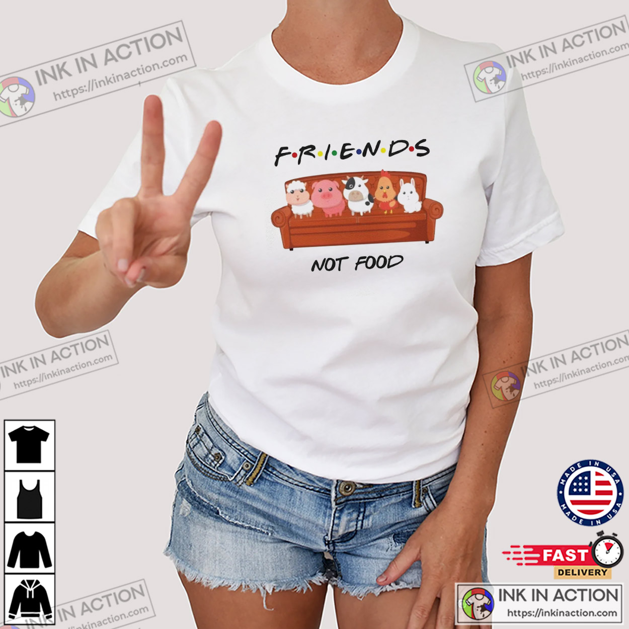 Are you ready to celebrate the holiday season with style and ease? Look no further! Our Animals Are FRIENDS Not Food Cute Vegetarian T-shirt, printed right here in the USA, offers affordable and practical options that will make your life stress-free and your celebrations unforgettable.