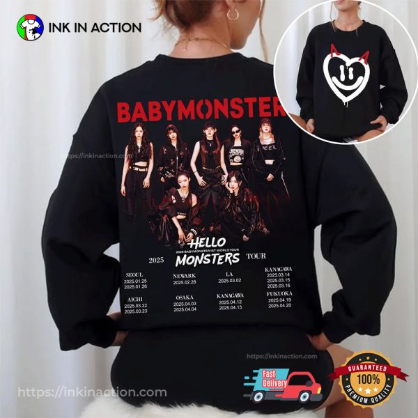 Attention music lovers, let’s check out our Babymonster Hello Monster World Tour 2025 2 Sided Shirt, proudly printed in the USA by InkInAction.com. With its unique and eye-catching design, this shirt will turn heads and start conversations.