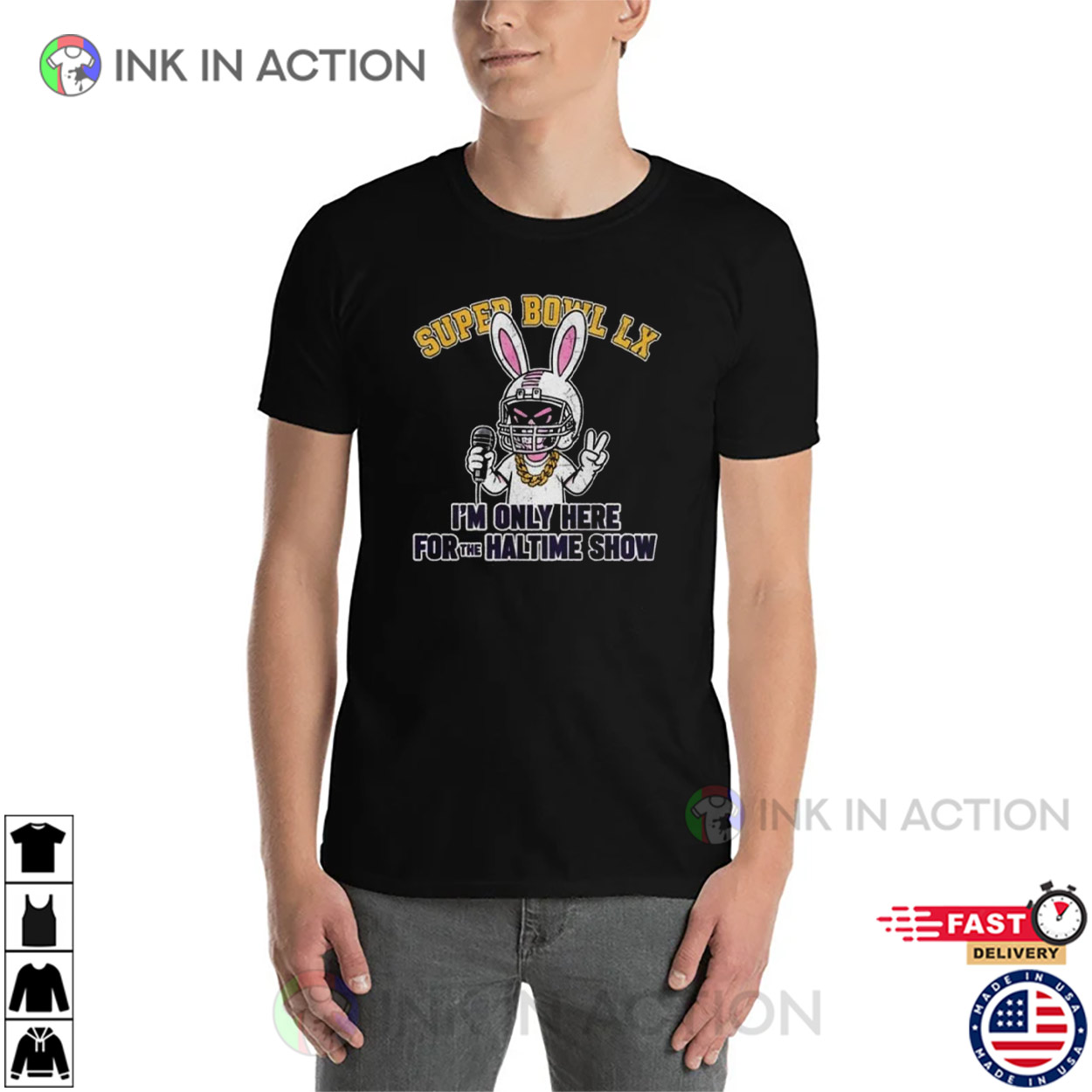 Whether you’re looking for the perfect football shirt for mom or a new jersey to wear on game day, we’ve got you covered. Our Bad Bunny I’m Only Here For The Halftime Show Super Bowl LX Shirt feature a variety of designs and team logos, so you can support your favorite team in style. From classic designs to bold graphics, our selection of Super Bowl t-shirts is sure to have something for every football fan.