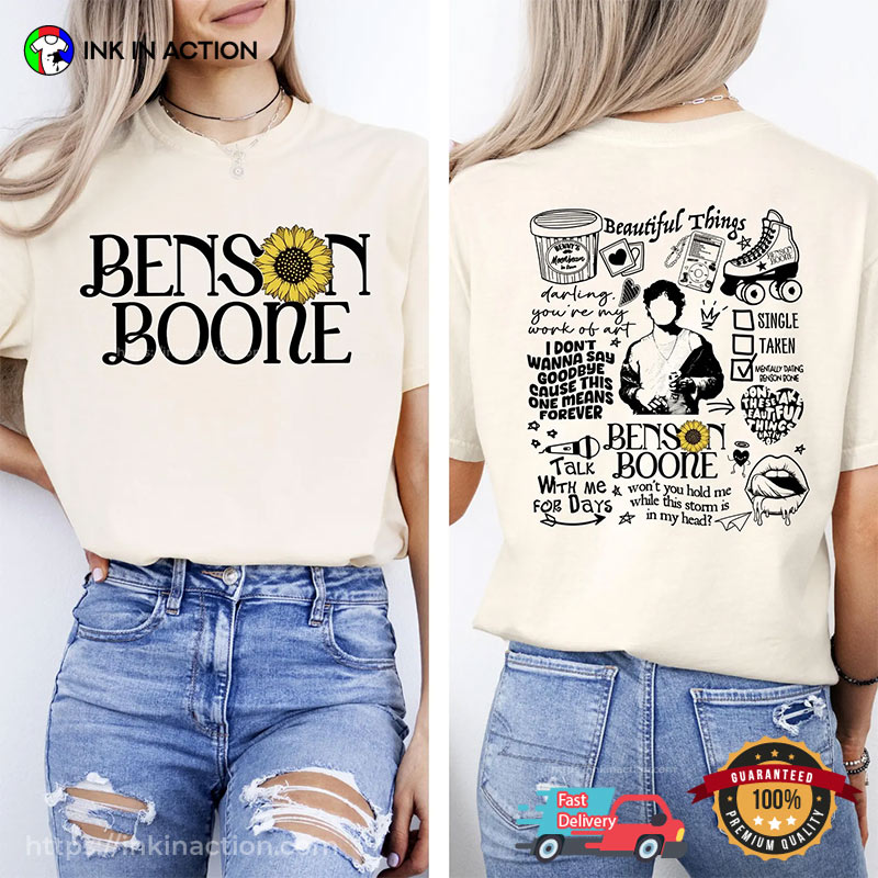 Attention music lovers, let’s check out our Benson Boone Concert 2025 2-sided Tee, proudly printed in the USA by InkInAction.com. With its unique and eye-catching design, this shirt is sure to turn heads and start conversations.