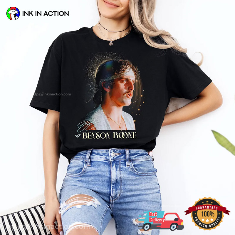 Attention music lovers, let’s check out our Benson Boone Pop Singer Portrait Signature T-shirt, proudly printed in the USA by InkInAction.com. With its unique and eye-catching design, this shirt is sure to turn heads and start conversations.