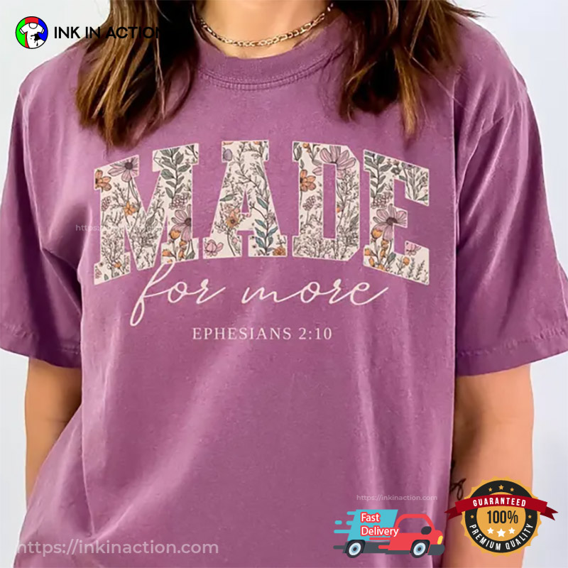 Share your beliefs boldly with this Bible Verse Made For More Comfort Colors T-shirt, featuring inspiring scripture and a clean, uplifting design. Made from soft, comfortable fabric, it’s perfect for church, everyday wear, or gifting to loved ones. Let your clothing speak faith, hope, and love wherever you go.