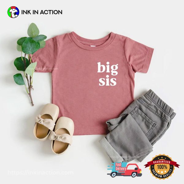 The April 10, holiday, National Sibling Day category applies to this Big Sis Baby and Toddler Sibling T-shirt.