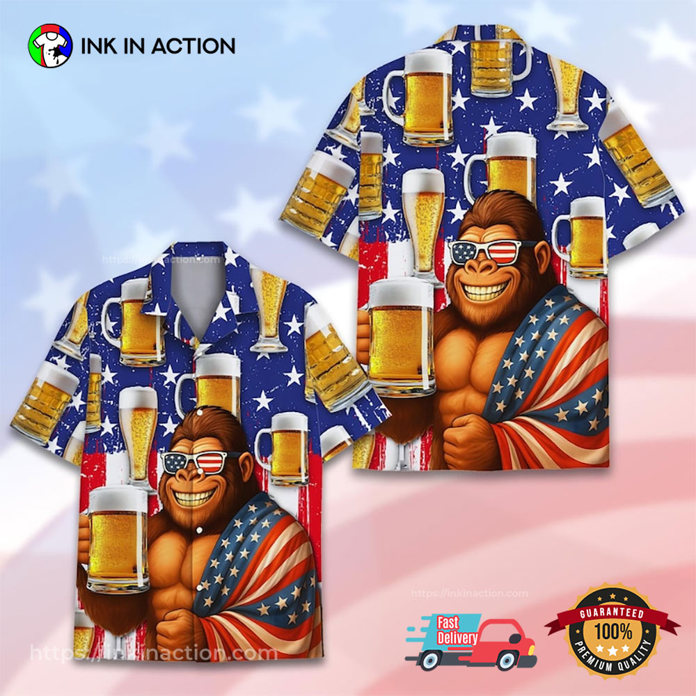 Bring the Aloha Spirit everywhere you go with Ink In Action’s Bigfoot Beer Funny 4th Of July Hawaiian Shirt!