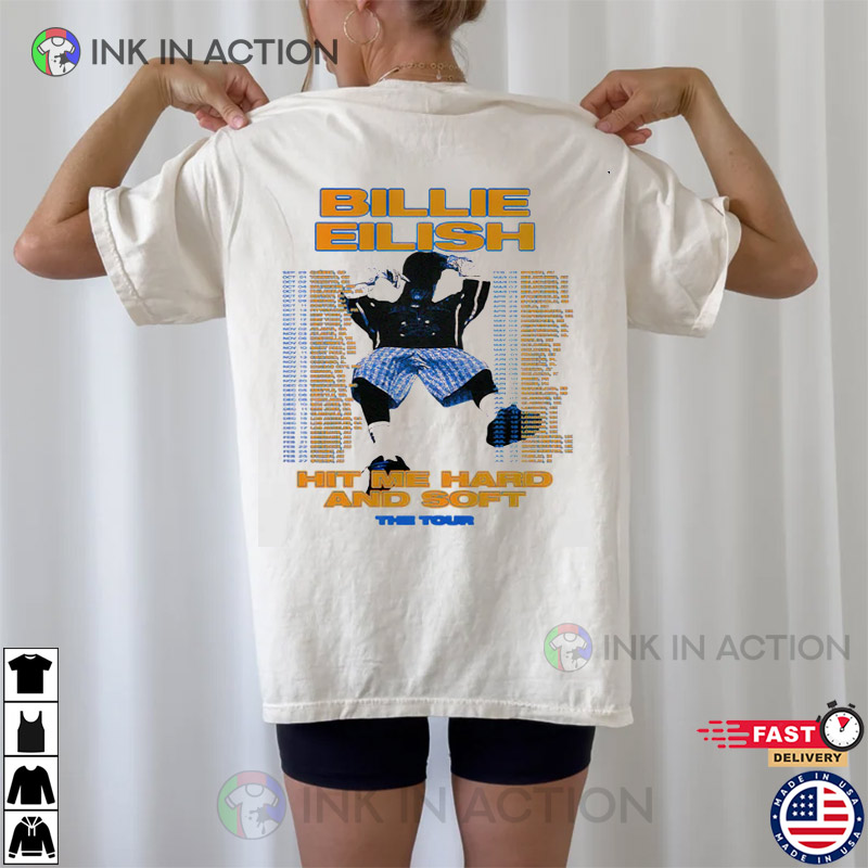Get ready for the next era of Billie with the Billie Eilish Hit Me Hard And Soft The Tour Tracklist Tee! Featuring exclusive designs inspired by her evolving style and upcoming projects, this T-shirt is perfect for die-hard fans looking to stay ahead of the trend. Made from soft, high-quality cotton, it offers ultimate comfort whether you’re at a concert, chilling with friends, or just showing off your love for Billie. Available in various sizes, the Billie Eilish 2025 T-shirt is a must-have for any fan. Get yours today and represent Billie in style!
