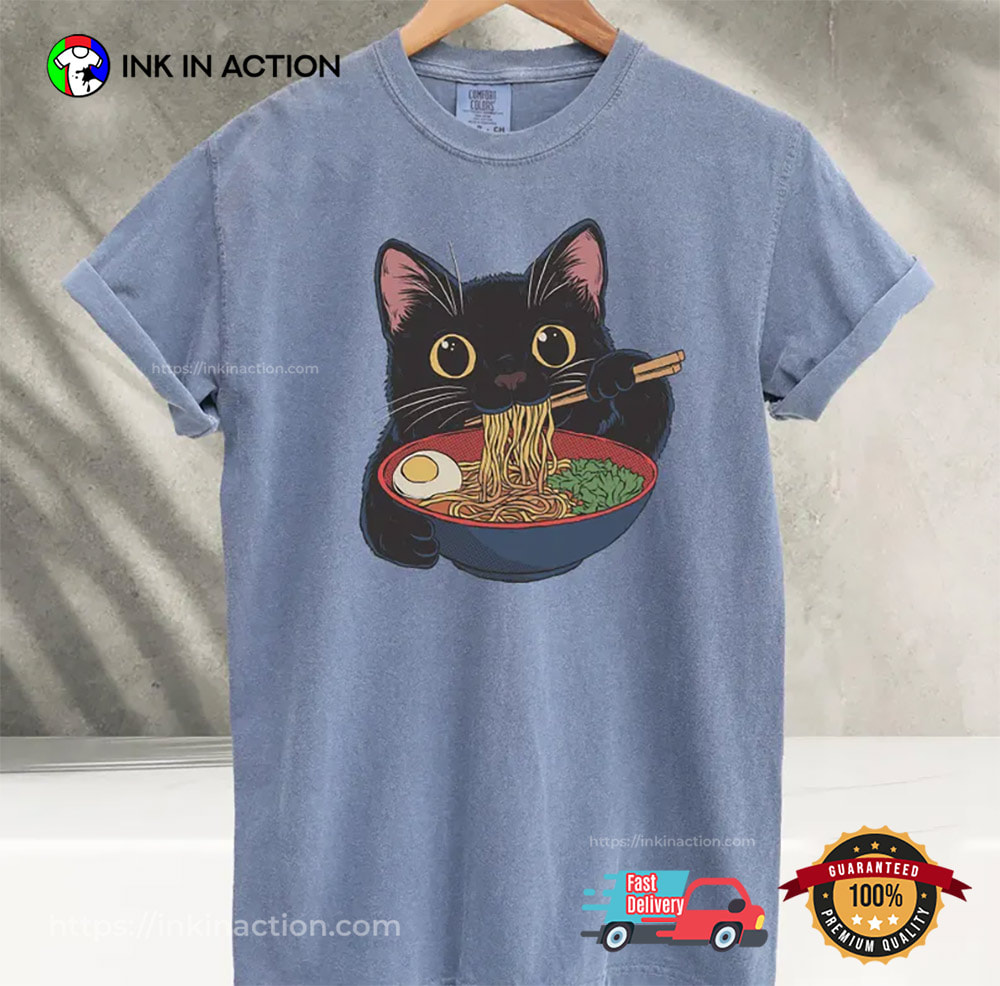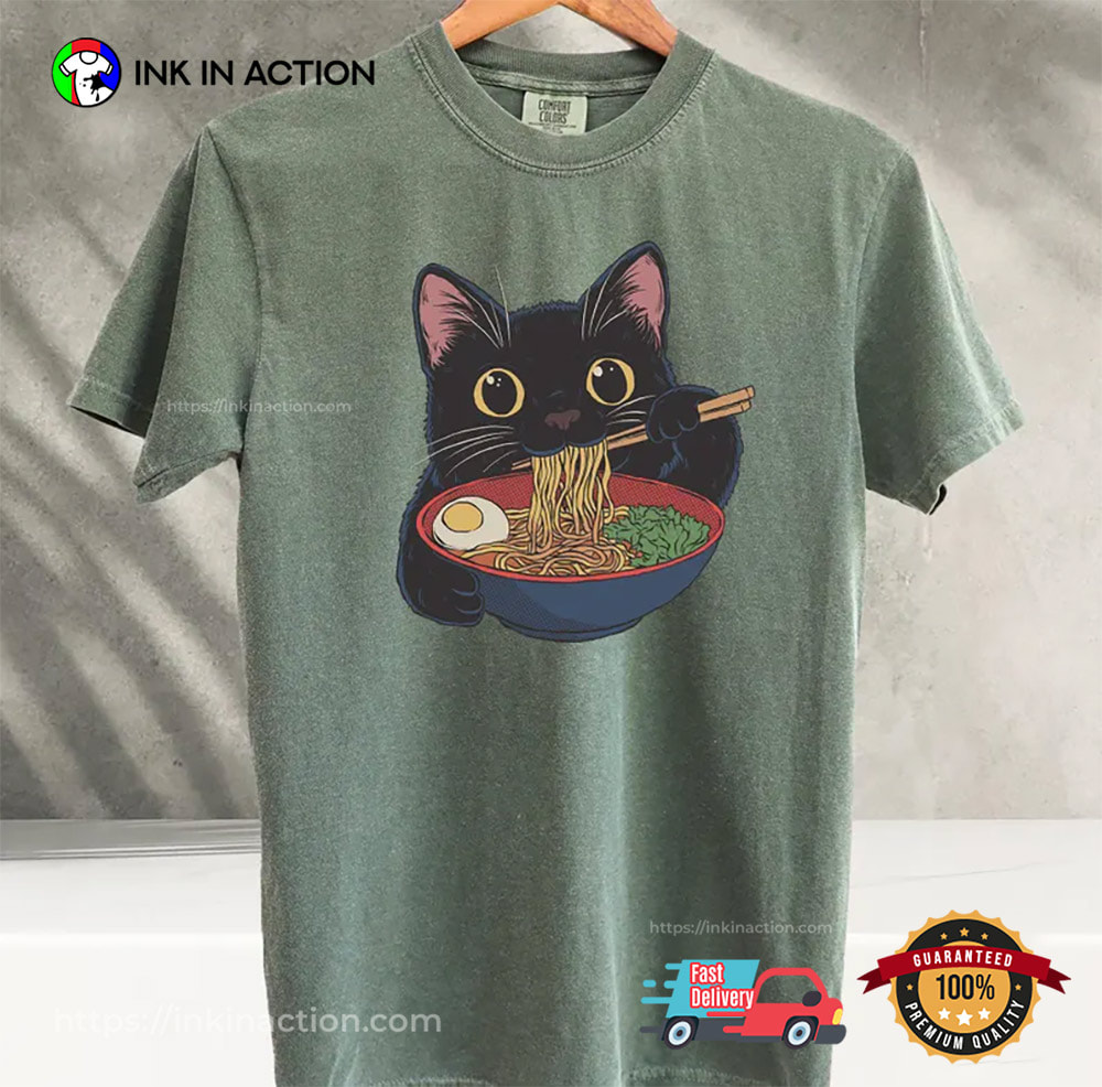 Do you need any clothes for this weekend? Anyone looking to eat, drink, and party all night will love our Black Cat With Ramen Japanese Comfort Colors Tee! The social influencers in your life who can’t get enough of their shirt would love receiving this as a gift for the holidays, a birthday, or the new year.