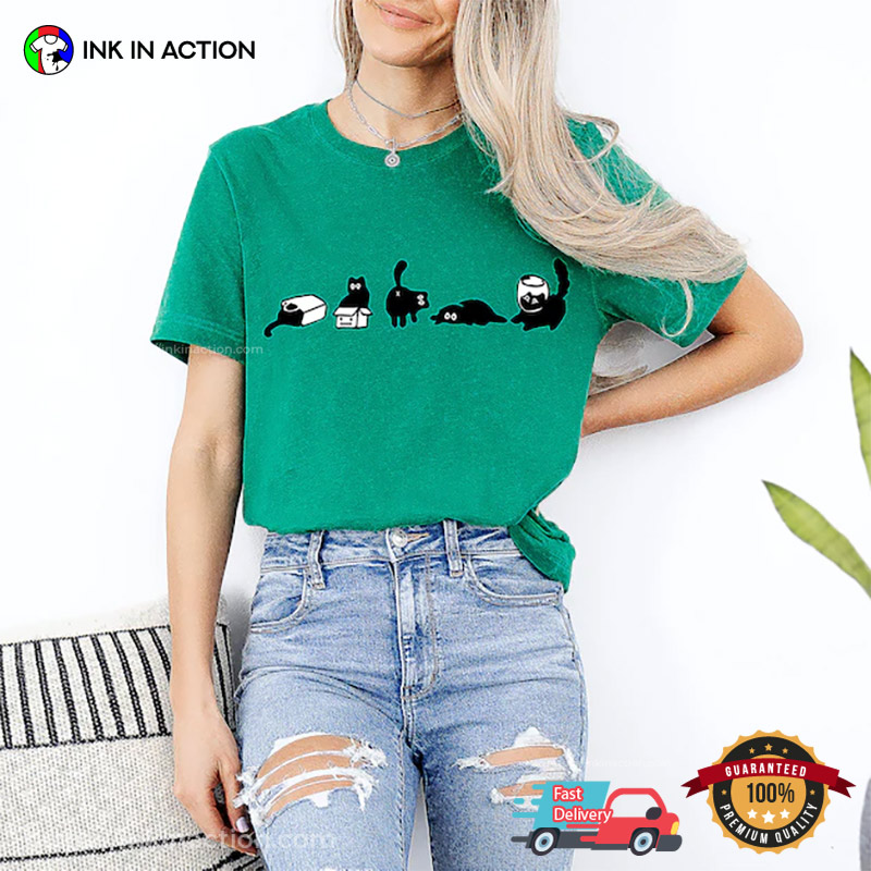 Are you ready to celebrate the holiday season with style and ease? Look no further! Our Black Cats Five Mood Funny Cats Daily T-shirt, printed right here in the USA, offers affordable and practical options that will make your life stress-free and your celebrations unforgettable.