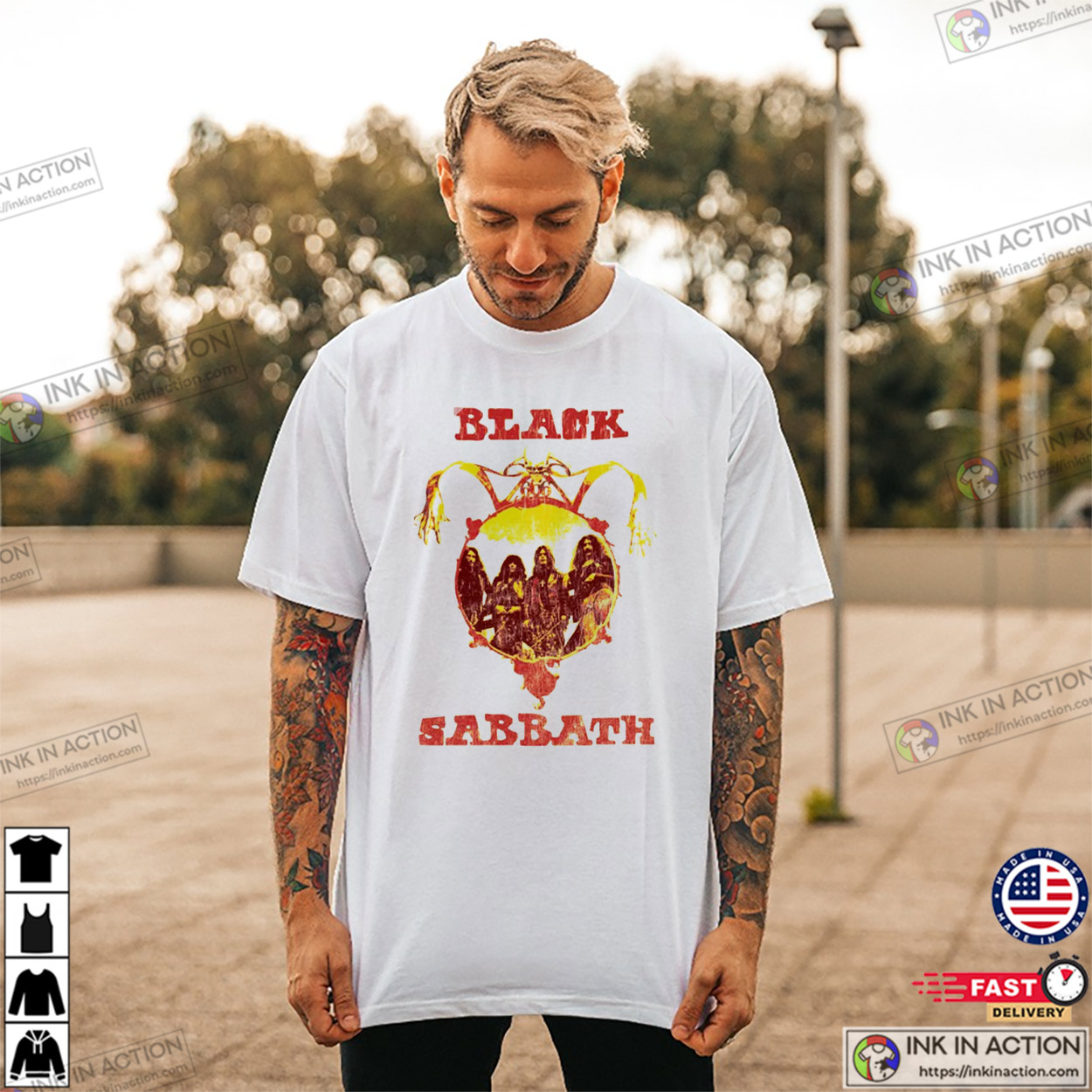Attention music lovers, let’s check out our Black Sabbath Heavy Metal Band Shirt, proudly printed in the USA by InkInAction.com. With its unique and eye-catching design, this shirt is sure to turn heads and start conversations.