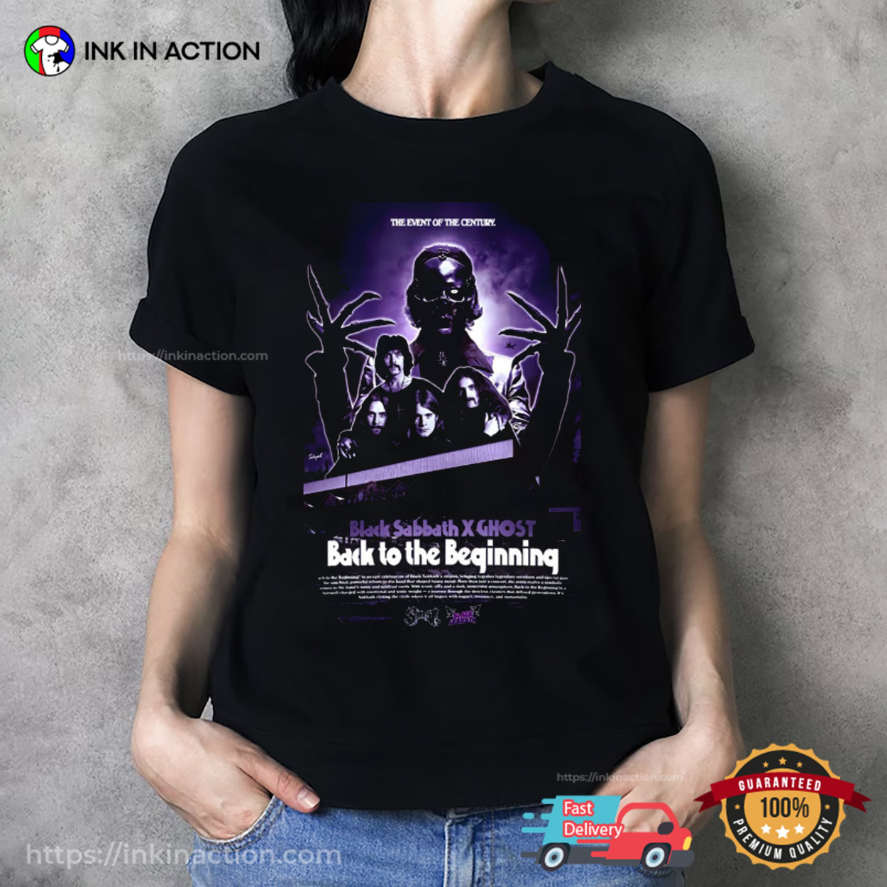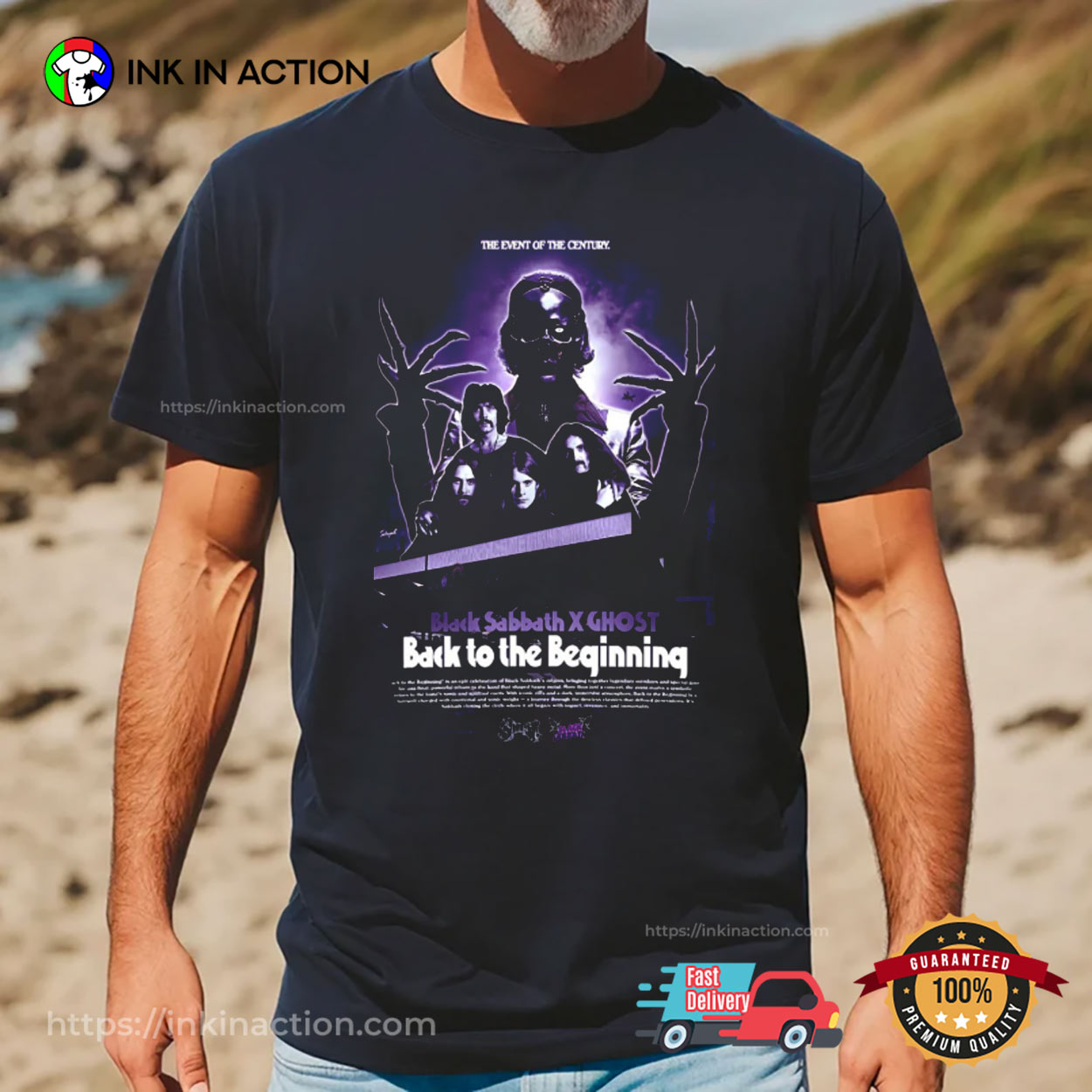Attention music lovers, let’s check out our Black Sabbath X Ghost Back To The Begining Tour Poster Tee, proudly printed in the USA by InkInAction.com. With its unique and eye-catching design, this shirt is sure to turn heads and start conversations.