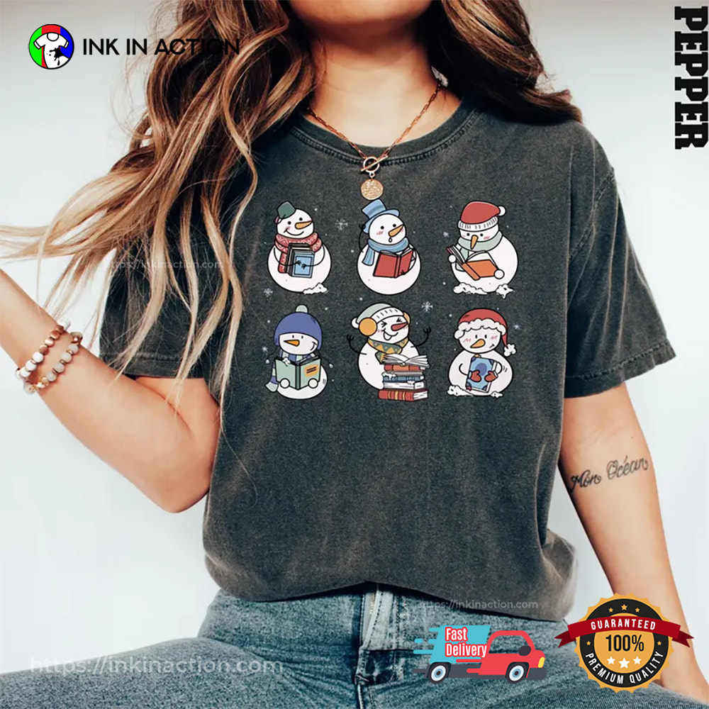 Book Lover Snowman Winter Holiday Comfort Colors Shirt