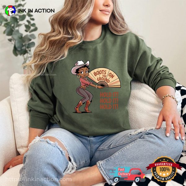 With Ink In Action’s trending shirt designs, you may go out with your pals in style. Have you ever been giddy about great trending t-shirts? Want something that will keep you consistently warm on those long, chilly nights? So stop looking now! You own this Boots On The Ground Hold It Cartoon Cowgirl Comfort Colors T-shirt.