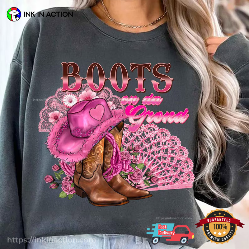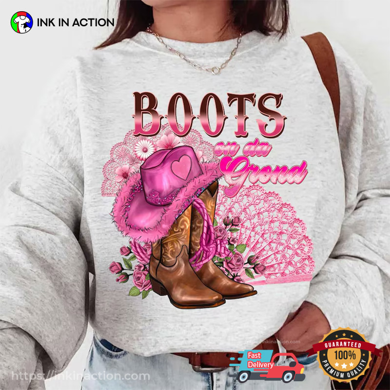 Looking for a statement piece that keeps you stylish and comfortable all year round? Our Boots On The Ground Pink Rodeo Fashion T-shirt are designed for those who love to stand out and express themselves through fashion-forward designs, pop culture references, and iconic graphics.