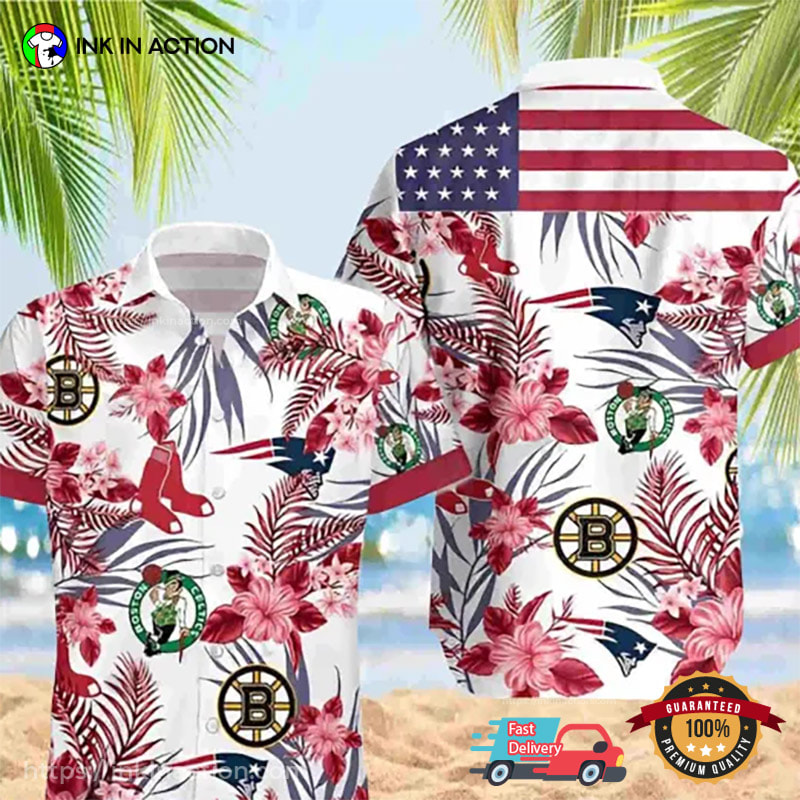 Boston Bruins Celtics Patriots USA Flag Hawaiian Shirt