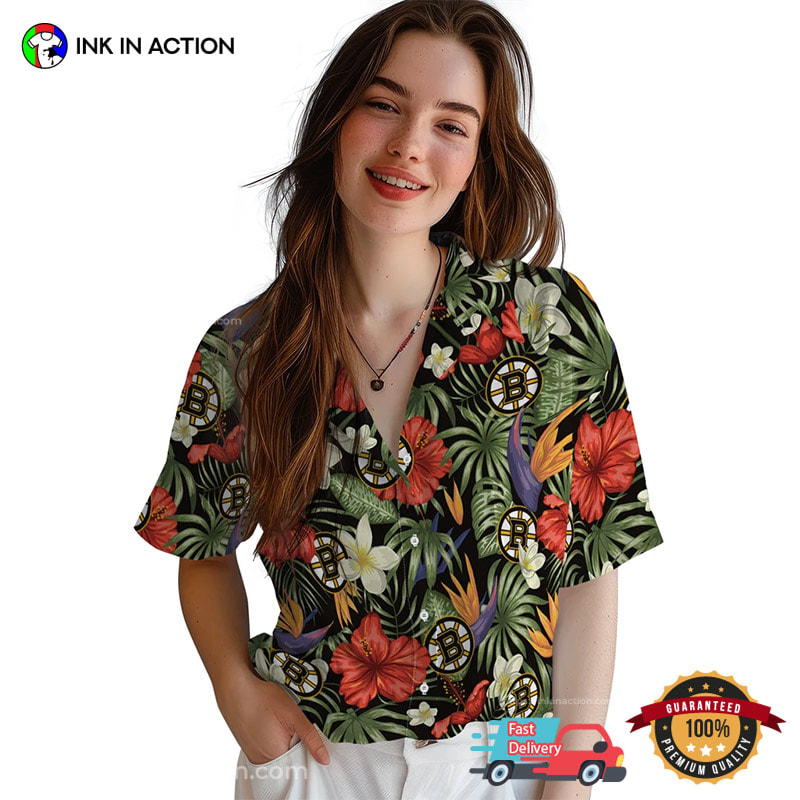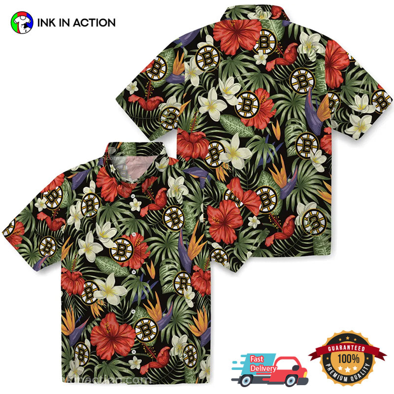 Made with high-quality materials and featuring unique and eye-catching designs, our shirts are the perfect addition to any wardrobe. Bring the Aloha spirit everywhere with Boston Bruins Floral Hibiscus Hawaiian Shirt.