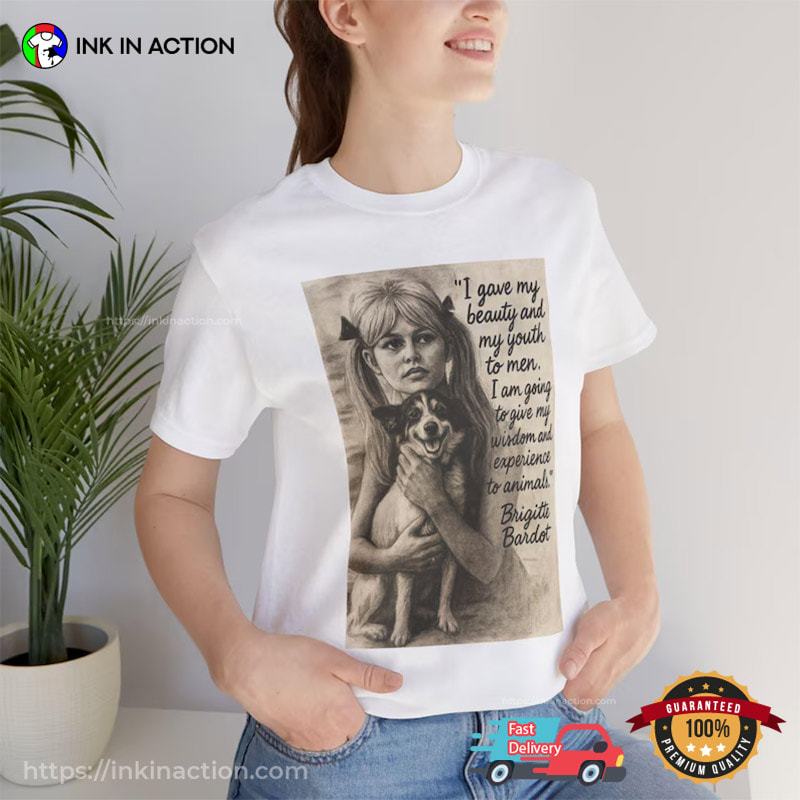 This Brigitte Bardot Quote Tee is categorized as tags: And God Created Woman, France Actress, RIP Brigitte Bardot.