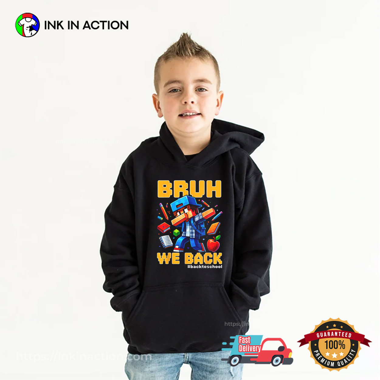 Our team prints each Bruh We Back Funny School Boys Minecraft T-shirt carefully. Our shirts are always soft and durable since we print with high-quality, water-based inks and employ traditional hand-screen printing procedures.