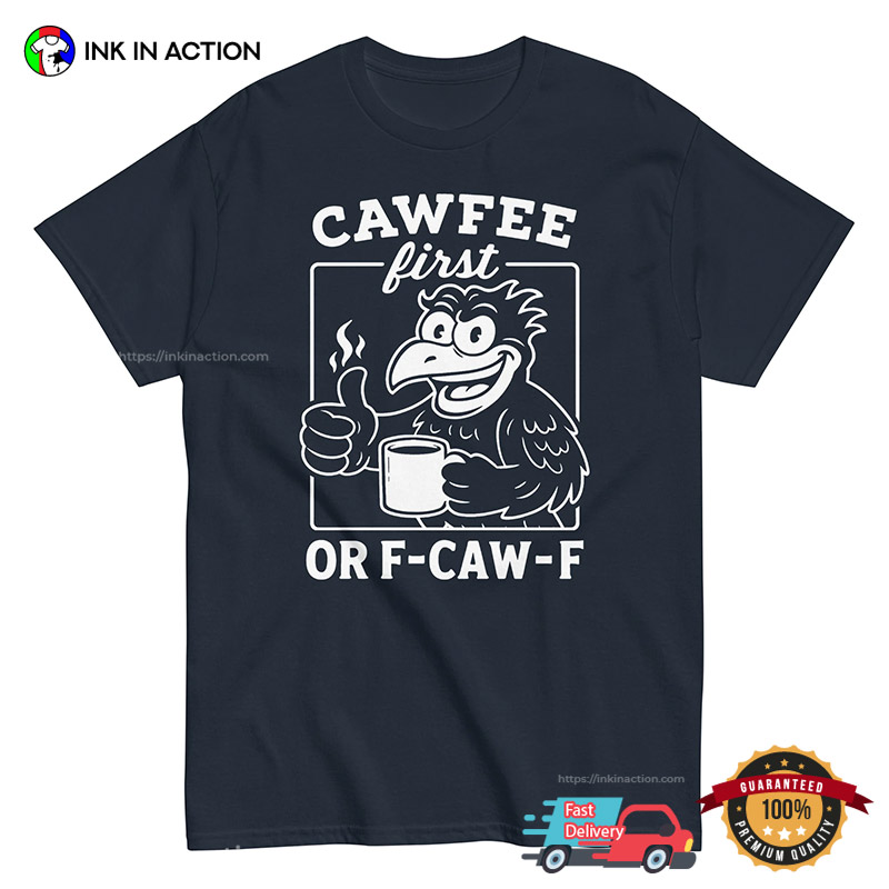 Looking for a statement piece that keeps you stylish and comfortable all year round? Our CAFFEE First Or F-Caw-F Funny Coffee T-shirt is designed for those who love to stand out and express themselves through fashion-forward designs, pop culture references, and iconic graphics.