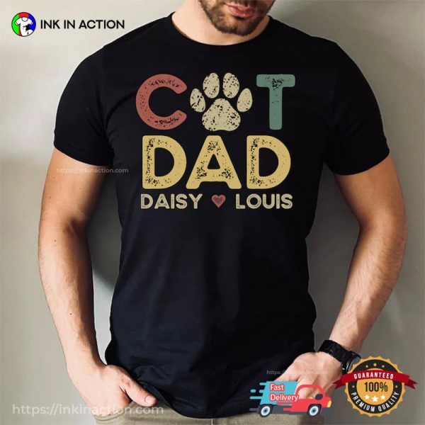 Are you ready to celebrate the holiday season with style and ease? Look no further! Our Retro Cat Dad Personalized Gift For Cat Father T-shirt, printed right here in the USA, offers affordable and practical options that will make your life stress-free and your celebrations unforgettable.