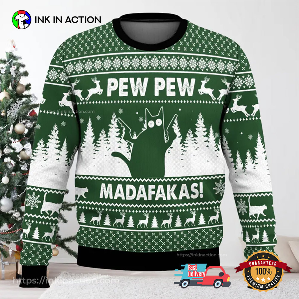 Welcome to the jolliest corner of the internet, where style meets hilarity—Ink In Action’s Cat Meme Xmas Funny Cat Ugly Christmas Sweater! As the holiday season approaches, it’s time to ditch the conventional and embrace the eccentric. Our curated selection of Ugly Christmas Sweaters is not just apparel; it’s a celebration of merriment, a fusion of fashion and laughter that guarantees to turn heads and spread joy.