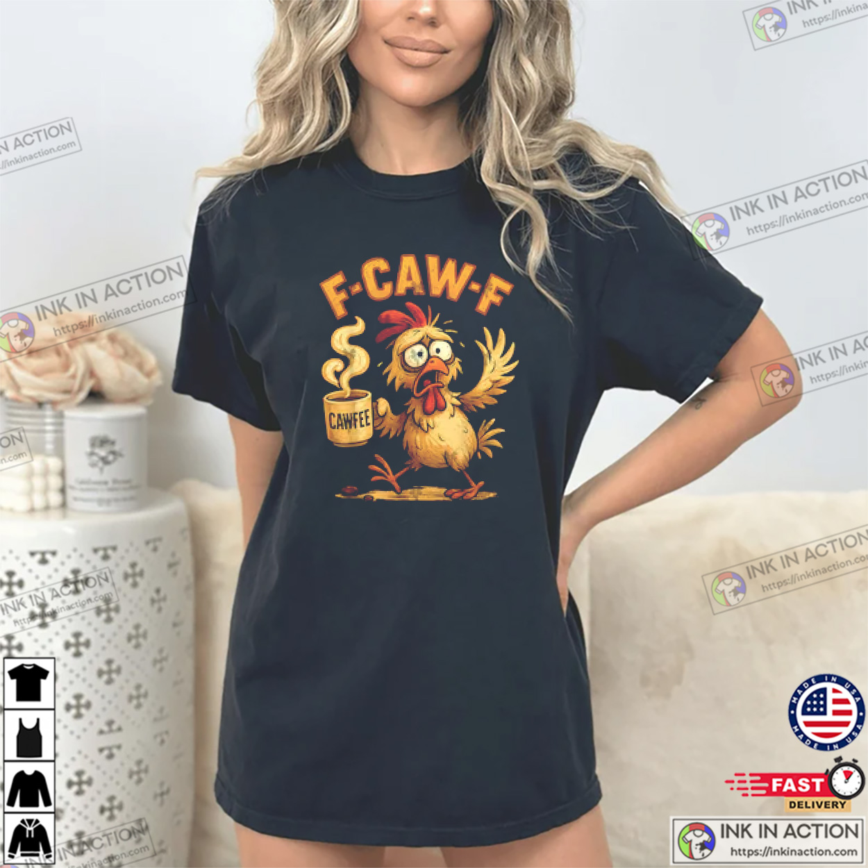 Looking for a statement piece that keeps you stylish and comfortable all year round? Our Cawfee Morning Chicken F-Caw-F T-shirt is designed for those who love to stand out and express themselves through fashion-forward designs, pop culture references, and iconic graphics.