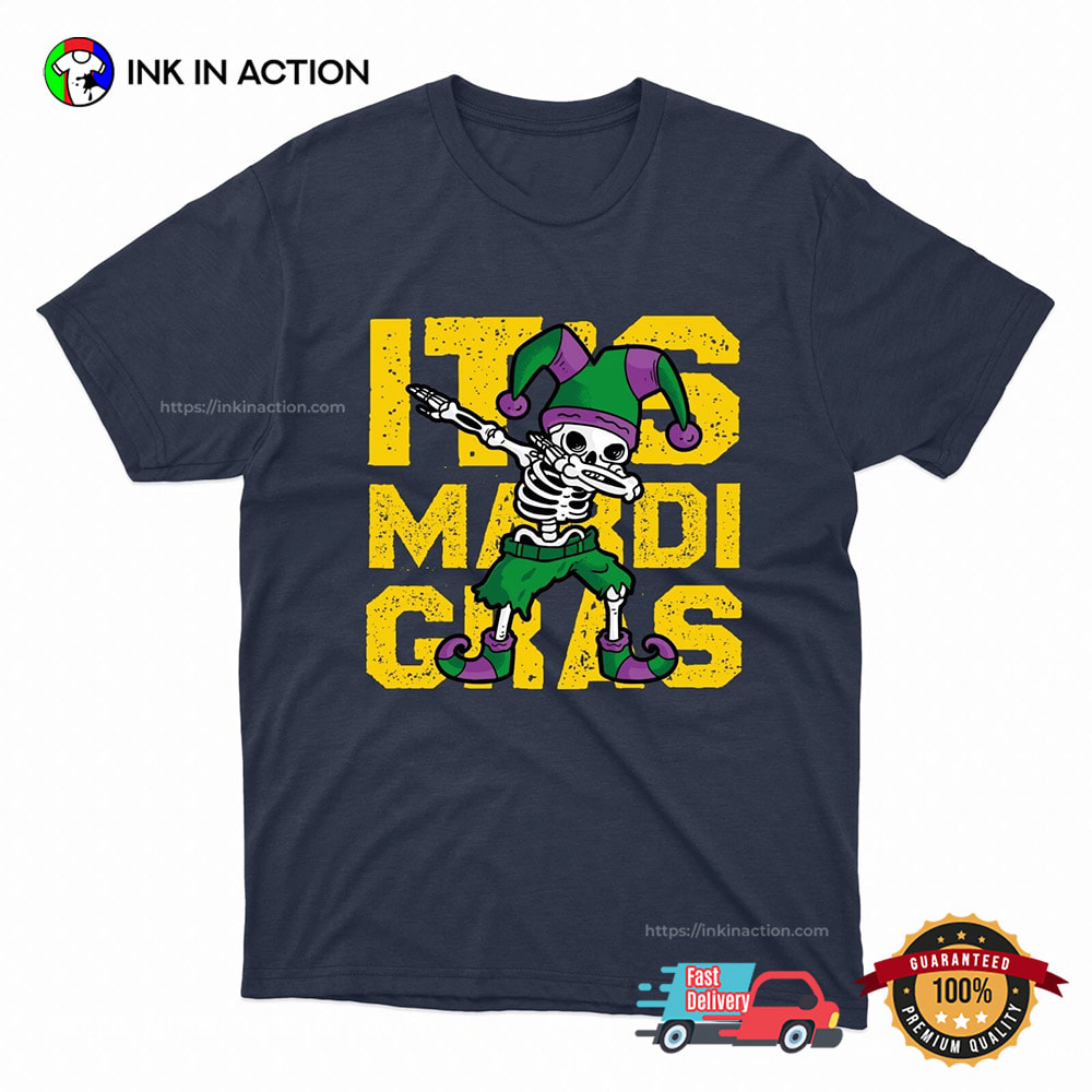 Are you ready to celebrate the holiday season with style and ease? Look no further! Our Celebrate Skeleton Dabbing Mardi Gras T-shirt, printed right here in the USA, offers affordable and practical options that will make your life stress-free and your celebrations unforgettable.