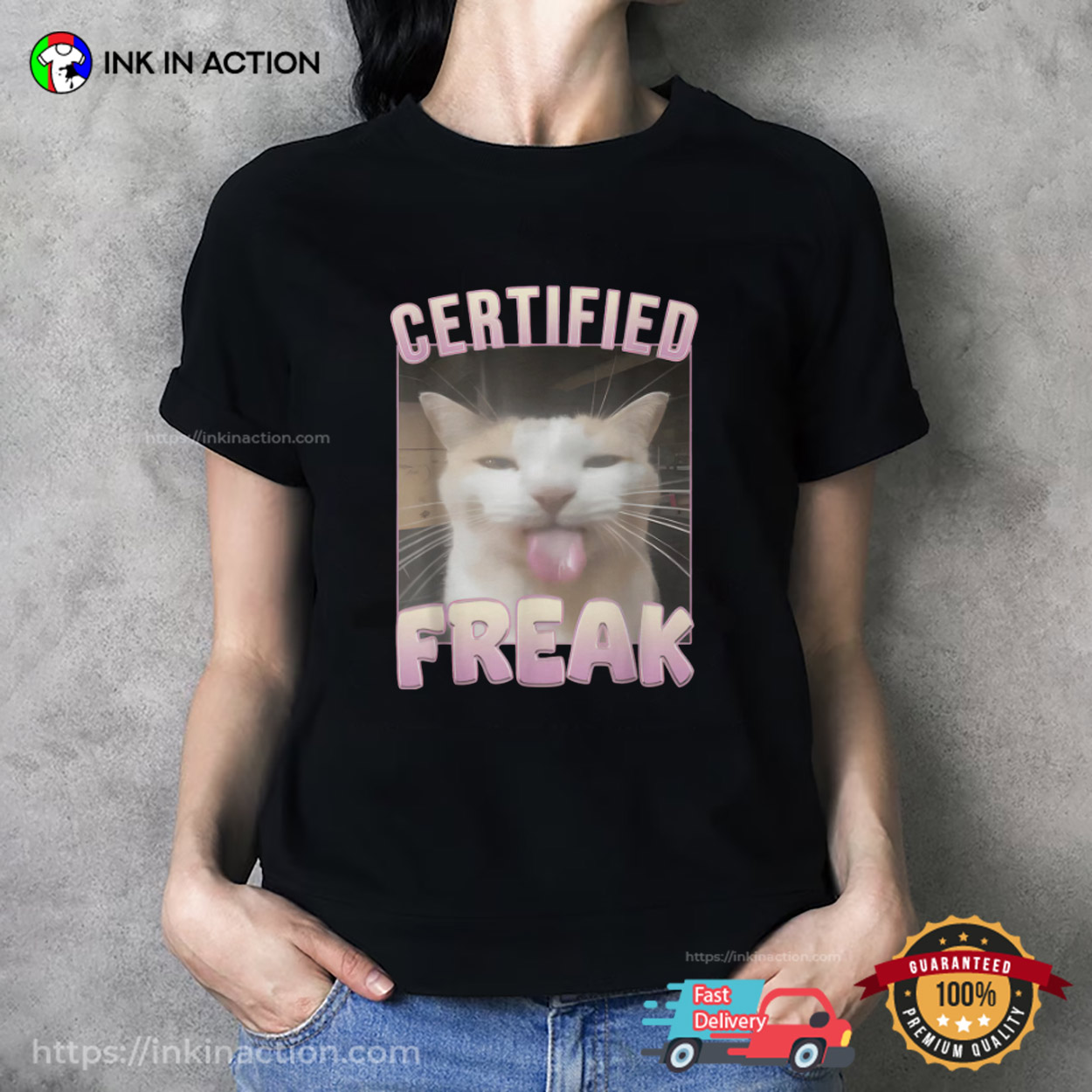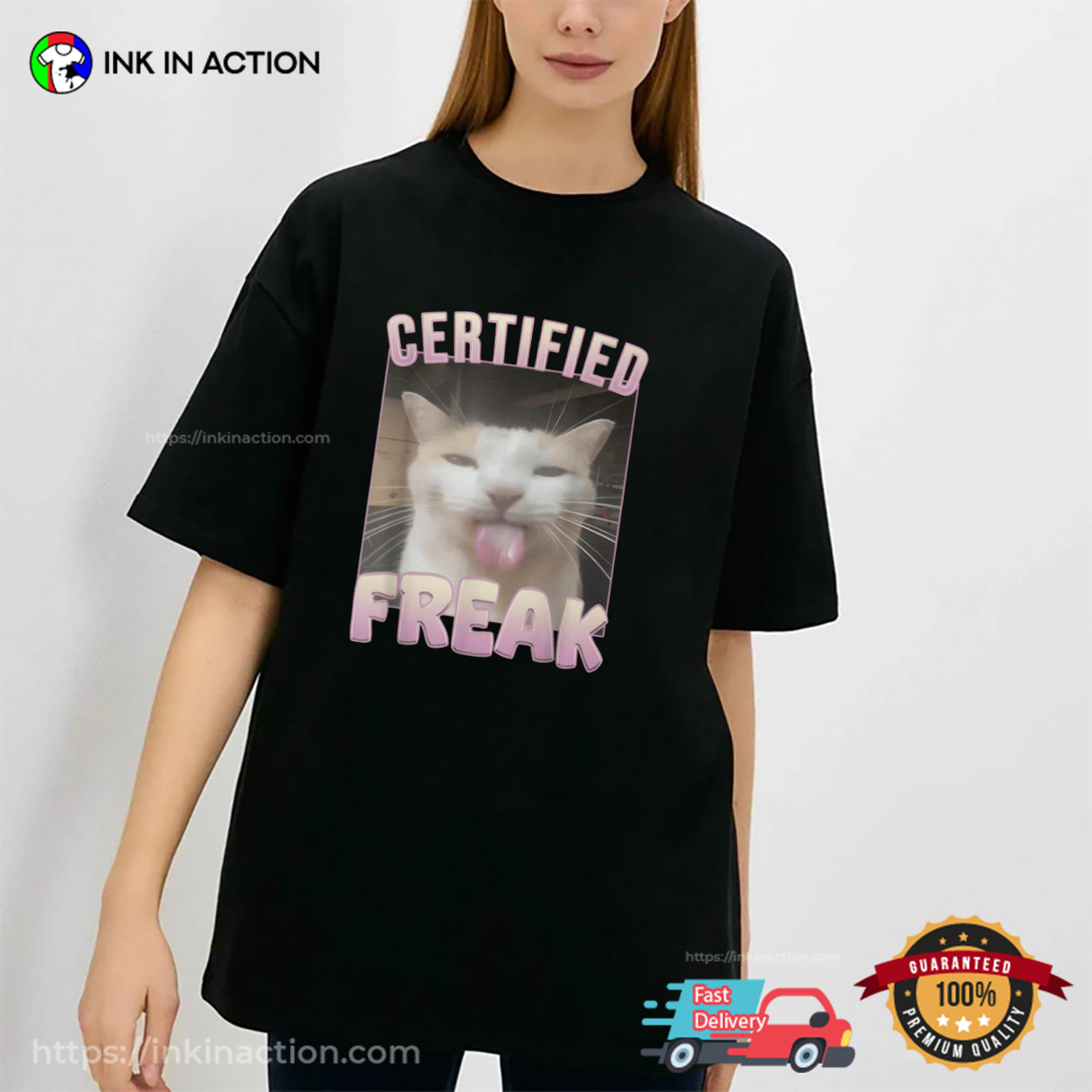 With Ink In Action’s trending shirt designs, you may go out with your pals in style. Have you ever been giddy about great trending t-shirts? Want something that will keep you consistently warm on those long, chilly nights? So stop looking now! You own this Certified Freak Funny Cat Unisex T-shirt.