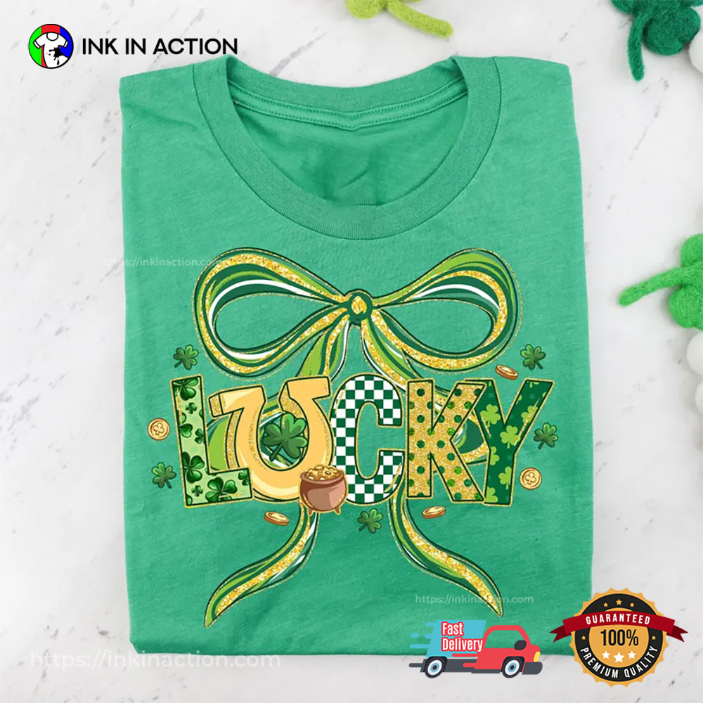 Retro Checkered Lucky Coquette St Patricks Day Shirt