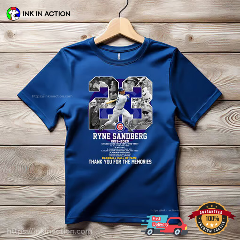 Chicago Cubs Legend Ryne Sandberg Forever 23 Memorial T-shirt: A legend on the field, forever in our hearts.