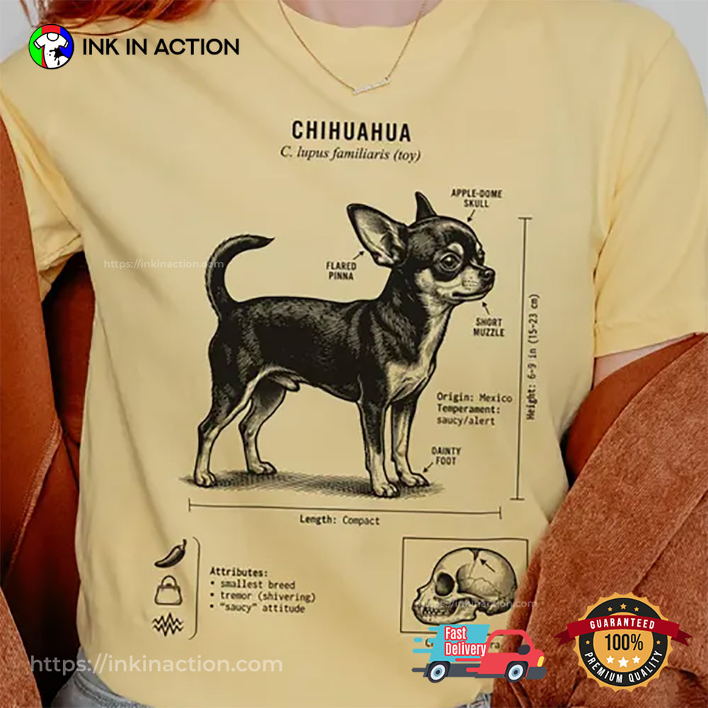 Enjoy relaxed vintage comfort with the Chihuahua Anatomy Dog Comfort Colors Tee, crafted from soft garment-dyed fabric for a lived-in feel and featuring adorable Chihuahua-inspired graphics that celebrate this playful little companion. Perfect for dog lovers, casual outings, or everyday wear while showing off cute pet personality in cozy style.