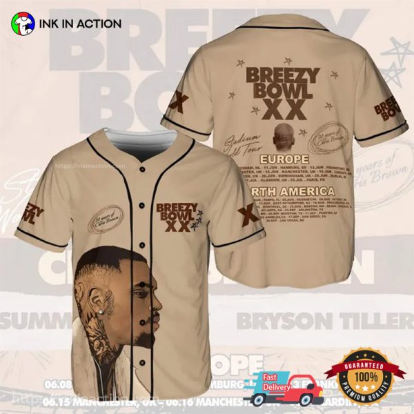 Chris Brown Breezy Bowl XX Tour 2025 Signature Baseball Jersey