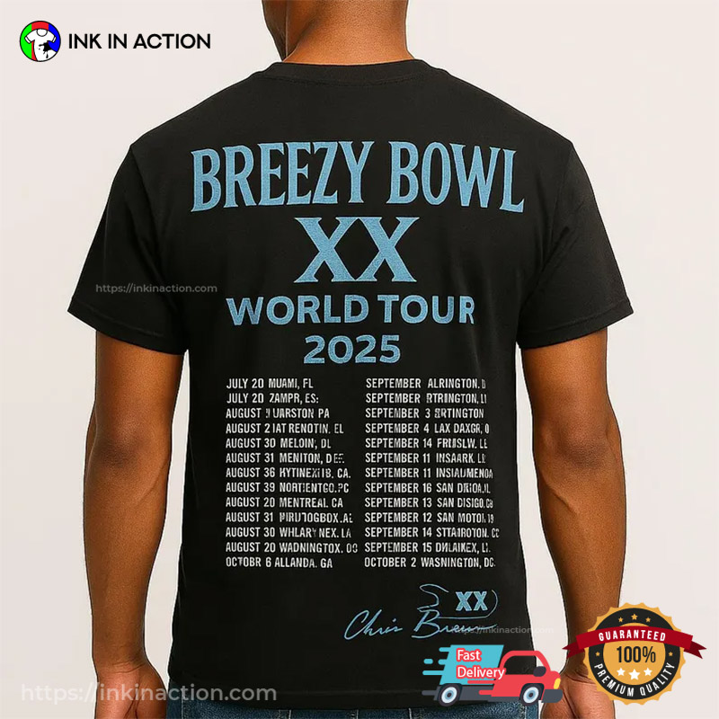 Attention music lovers, let’s check out our Chris Brown Breezy Bowl XX World Tour 2025 2-sided T-shirt, proudly printed in the USA by InkInAction.com. With its unique and eye-catching design, this shirt will turn heads and start conversations.