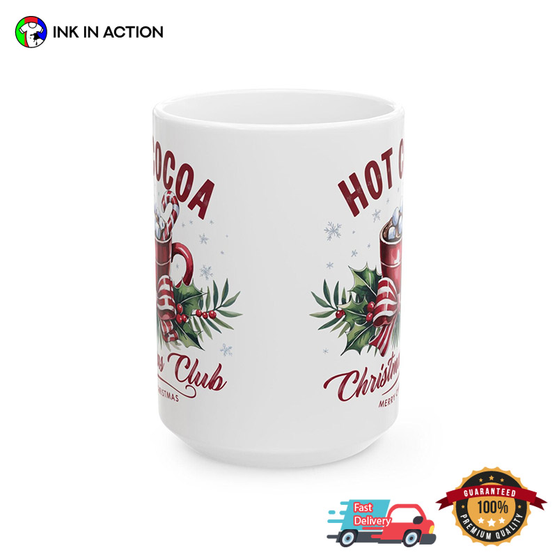 Christmas Club Hot Cocoa Holiday Mug has become an essential part of the holiday season, and our collection takes them to a whole new level. From classic holiday designs to customizable options that let you add a personal touch, our Christmas mugs are not just vessels for your favorite beverages; they’re festive companions that add flair to your holiday rituals.