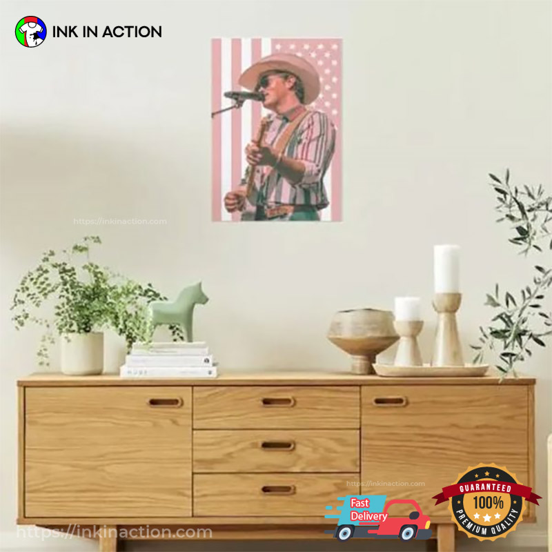 The decor, poster, trending category applies to this Country Music Zach Top Cowboy USA Flag Poster.