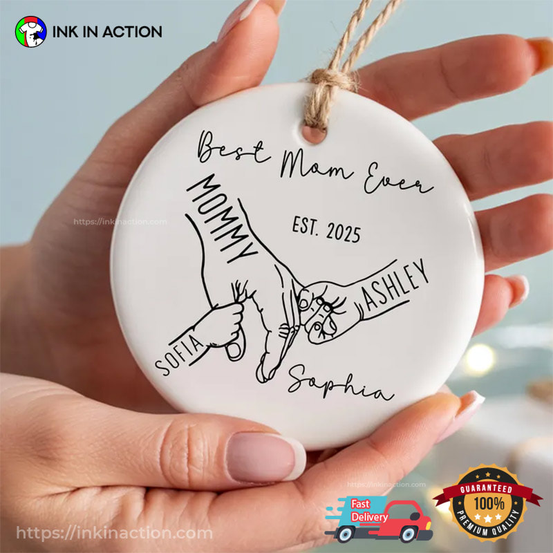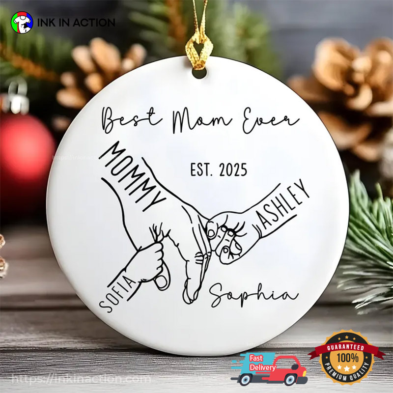 Ready to make your holiday decor shine with this brand-new Custom Best Mom Ever Holding Hands Happy Mothers Day Ornament?