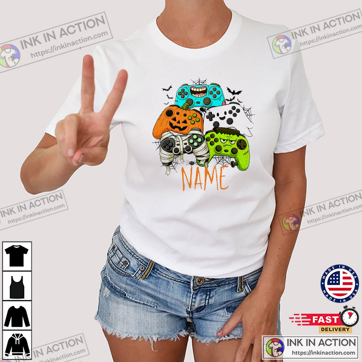 Custom Gamer Halloween Console T-shirt: Game on, spooky style unlocked.