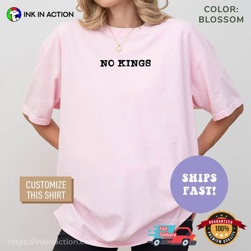 Are you ready to celebrate the holiday season with style and ease? Look no further! Our Custom No Kings Democracy Quotes Comfort Colors T-shirt, printed right here in the USA, offers affordable and practical options that will make your life stress-free and your celebrations unforgettable.