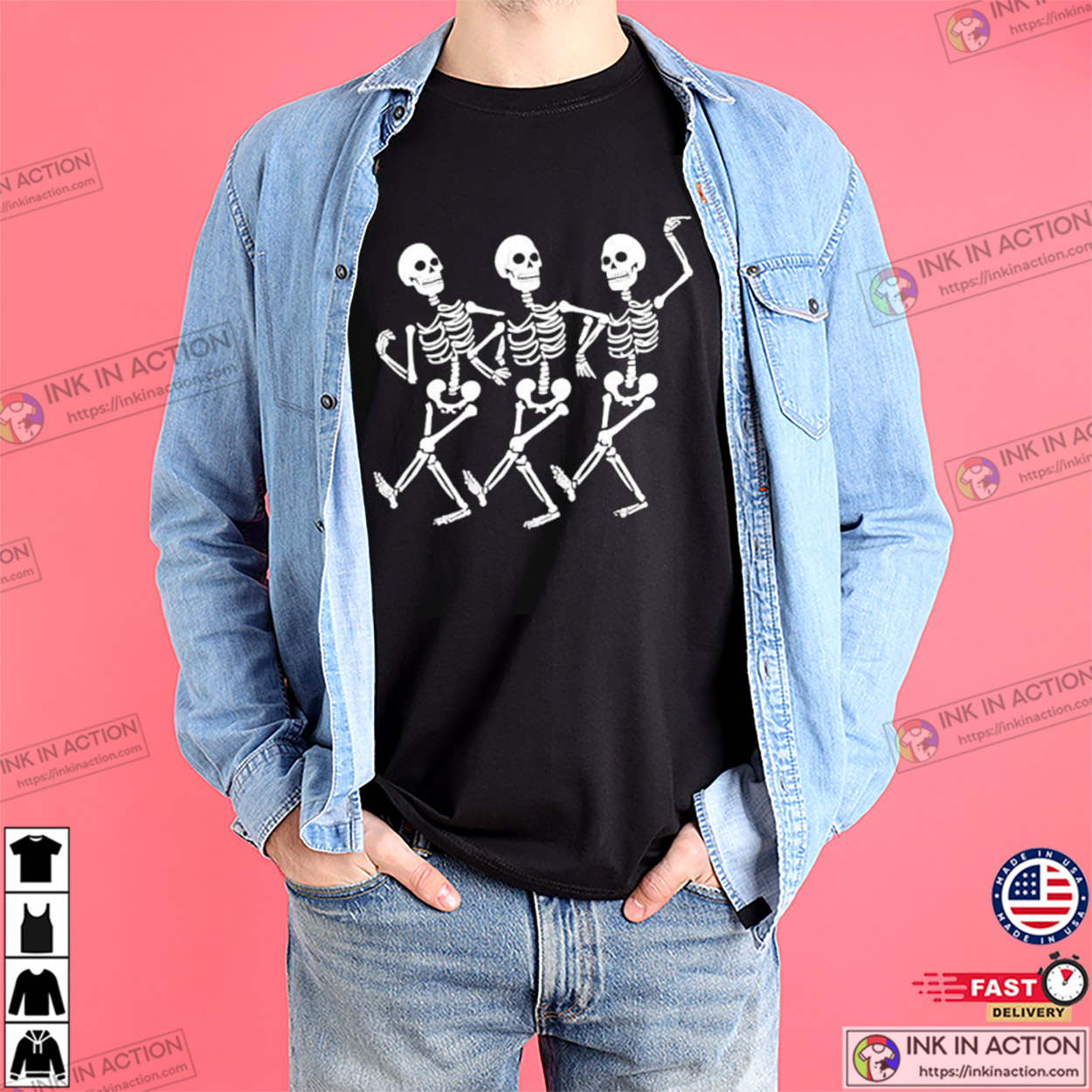 Welcome to the spookiest season of the year! Halloween is just around the corner, and there’s no better way to celebrate than with our Dancing Halloween Skeleton Holiday T-shirt at InkInAction.com. From classic designs to modern twists, we’ve got everything you need to make this Halloween unforgettable.