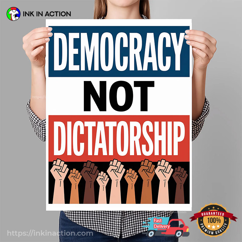 Your home is a reflection of who you are, and our Democracy Not Dictatorship Protest Sign Poster is the perfect way to tell your story. Whether you want to showcase your love for nature, music, or travel, our high-quality printing and customizable design will bring your vision to life.