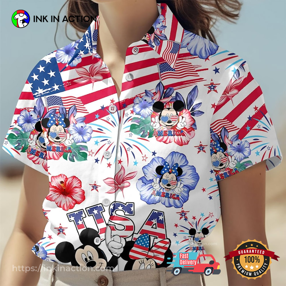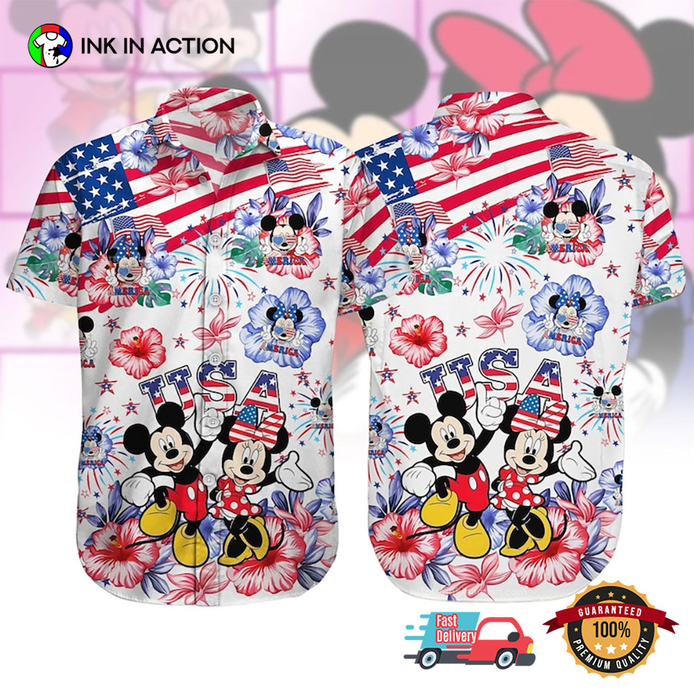 Made with high-quality materials and featuring unique and eye-catching designs, our shirts are the perfect addition to any wardrobe. Bring the Aloha spirit everywhere with Disney Mickey And Minnie 4th Of July Hawaiian Shirt.