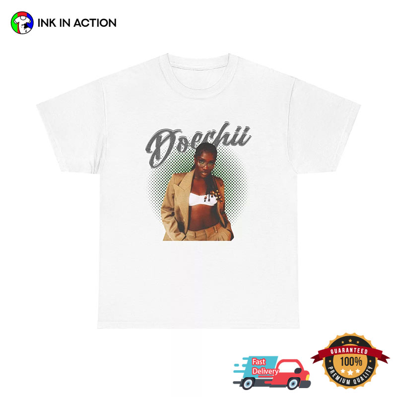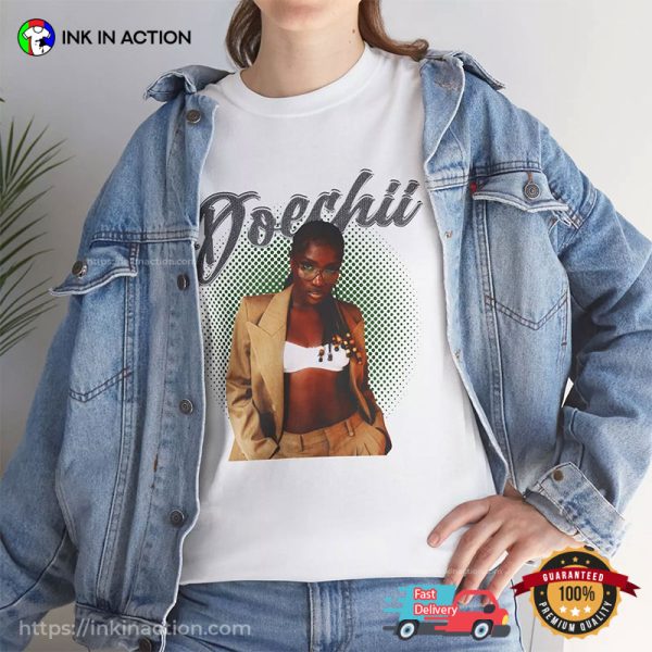 Attention music lovers, let’s check out our Doechii American Rapper Graphic T-shirt, proudly printed in the USA by InkInAction.com. With its unique and eye-catching design, this shirt is sure to turn heads and start conversations.