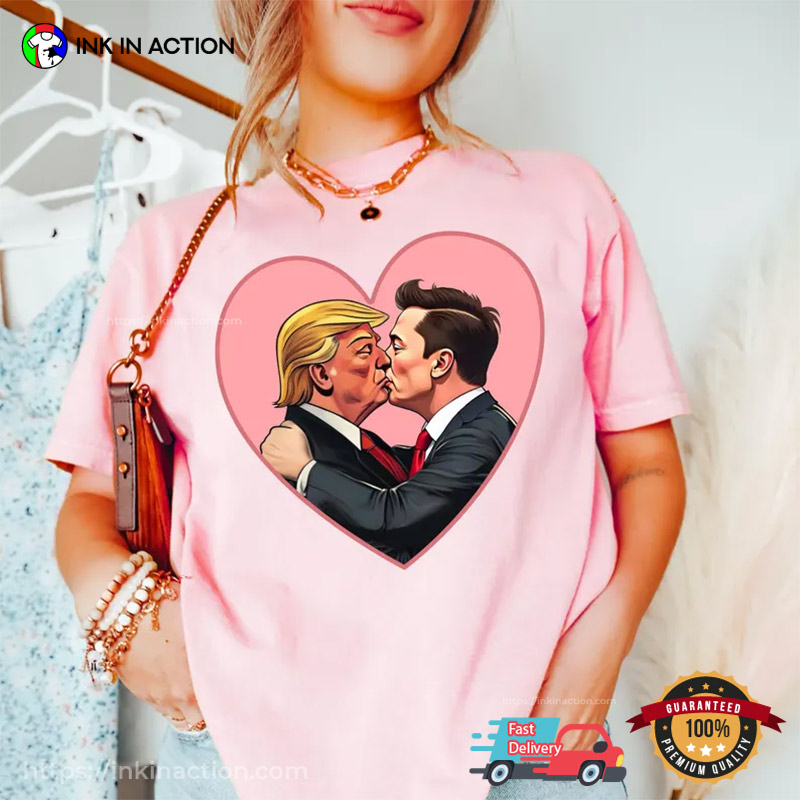 Donald Trump And Elon Musk Kiss Political Humor Comfort Colors T-shirt: Bold Style, Big Personalities!