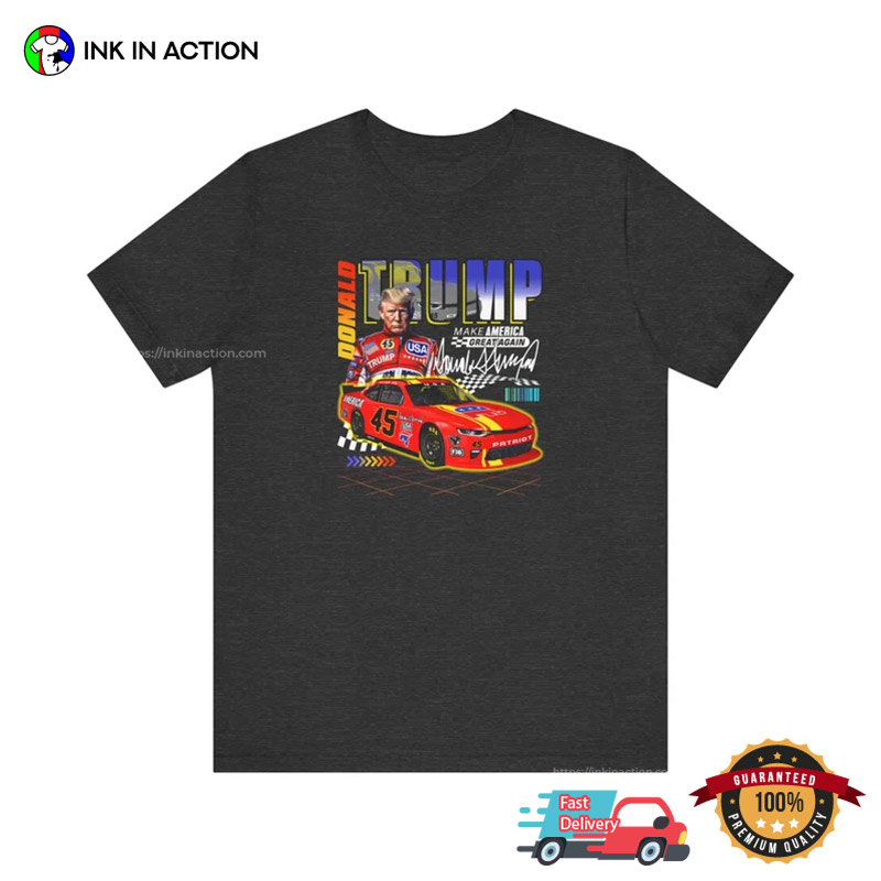 With Ink In Action’s Donald Trump Racing Car MAGA T-shirt, you may go out with your pals in style.